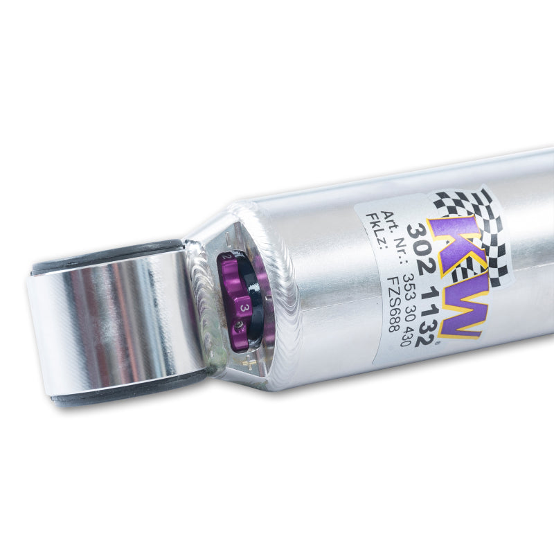 Designed to maximize the performance on vehicles with DOT-R and other ultra high-performance tire setups. KW Clubsport 2-Way coilovers are the ideal choice for double-duty street cars, use at HPDE's(high performance drivers education), time attack or time trials, and club level racing.The Clubsport setup was specially designed on the Nordschleife and the continuous adjustable ride height allows for fine corner weight or making setup changes. The TVR-A and TVC-A valve technology -rovide an unmatched level of separately adjustable damping for the rebound and compression enabling a customized set up appropriate for the vehicle's modifications such as weight, tire characteristics, and other various conditions. The KW Clubsport 2-Way INOX-LINE coilover kit is the ideal tool for performance-oriented drivers and experienced tuning enthusiasts who place a strong emphasis on the overall performance of their suspension. The KW 2-Way Clubsport features patented TVR-A and TVC-A technology -hat provides separately adjustable rebound and compression damping. The extensive Adjustment -ange of the independently configurable rebound and compression make it easy to directly influence the steering behavior, directional stability, grip and handling characteristics for confident and repeatable results at the limit of driving dynamics.